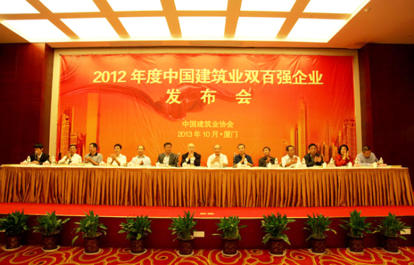 10月17日,中建協(xié)在廈門召開發(fā)布會,向2012年度中國建筑業(yè)雙百強企業(yè)頒發(fā)牌證,同時發(fā)布《2012年度中國建筑業(yè)雙百強企業(yè)研究報告》。中建協(xié)副會長徐義屏、副會長兼秘書長吳濤出席會議,副秘書長趙峰主持會議。